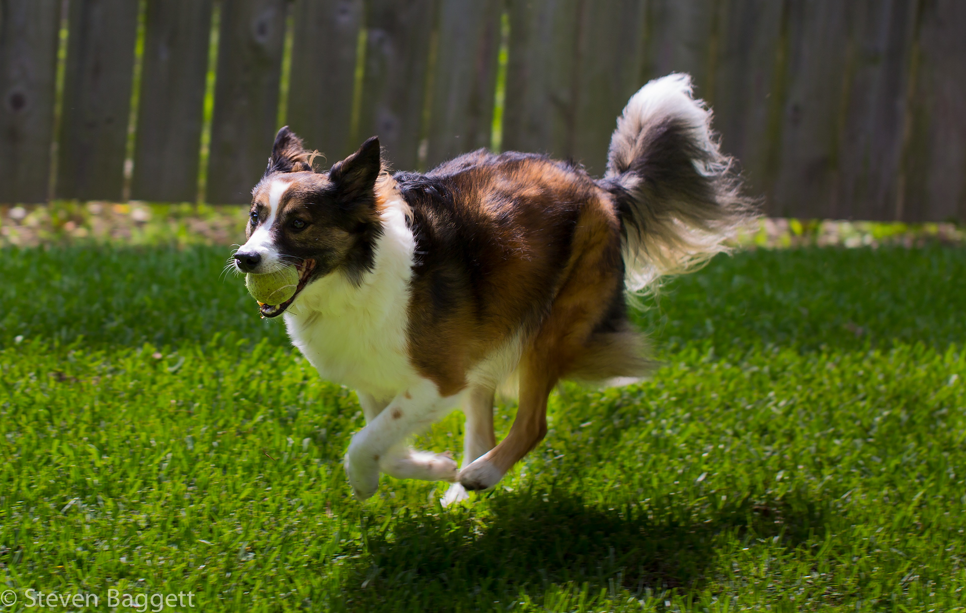 The lovely Molly pursues tennis balls with great style.